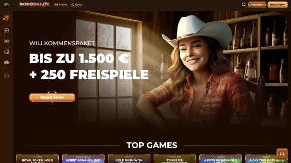 Willkommen bei RodeoSlot Casino, gestartet 2025 und betrieben von Neroblanko Tech B.V. Wir bieten rund 6.000 Spiele aus Slots, Live-Casino, Tischspielen sowie ein vollwertiges Sportwetten-Angebot inklusive eSports. Für Spieler aus Österreich betreiben wir die Seite unter einer Lizenz des Curaçao Gaming Control Board (OGL/2024/1260/0494) und schützen den Datenverkehr mit SSL-Verschlüsselung von Google Trust Services (WE1). Wenn Sie Casino RodeoSlot Österreich-Optionen vergleichen, sehen Sie außerdem klare EUR-Banking-Regeln und veröffentlichte Auszahlungslimits. RodeoSlot ist auf Deutsch und in vielen weiteren Sprachen verfügbar, und unser Support-Team erreichen Sie per Live-Chat und E-Mail. In RodeoSlot Bewertungen heben Spieler oft hervor, wie schnell man Spiele nach Anbieter und Feature findet.
